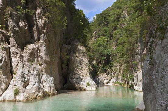 Wo die Toten leben, wussten die alten Griechen ziemlich genau: jenseits der Grenzflüsse zur Unterwelt. Der 58 km lange Ácheron war einer von fünf. Beim heutigen Dorf Glikí liegen seine Quellen, die Ácheron Springs. Wo die Straße endet, beginnt ein märchenhafter Platanenwald. Die Bäume haben Felsbrocken gespalten oder umschlingen sie, ihre Stämme strecken sich manchmal fast waagerecht hin zum Fluss. Aus dem Fels und aus dem Sand entspringen zahllose Quellen. Nach 700 m Urwald heißt es: Schuhe aus, wenn man weiter in die Schlucht vordringen will. Dabei muss man je nach Wasserstand auch schon mal ein paar Meter schwimmen. Wer genug Kondition hat, durchwandert die gesamte Schlucht in etwa vier Stunden. 7,2 km und 220 m Höhenunterschied sind dabei zu bewältigen. Diese und weitere Trekkingtouren kann man auch mit Führung unternehmen – das Team von Riverdream steht dafür am Parkplatz nach Voranmeldung bereit. Das kleine alternative Unternehmen bietet hier am Ácheron auch eine ganze Reihe weiterer Aktivitäten an: Vom kurzen Pferderitt im Flussbett über Bogenschießen und Paragliding bis hin zu Raftingtouren. Kulinarische Souvenirs kaufst du gut an Bauernständen am Straßenende: Auch außergewöhnliche Honigsorten wie Erdbeerbaumblütenhonig, getrocknete Kräuter und viele Kräutertees zum Beispiel aus Heideblüten.