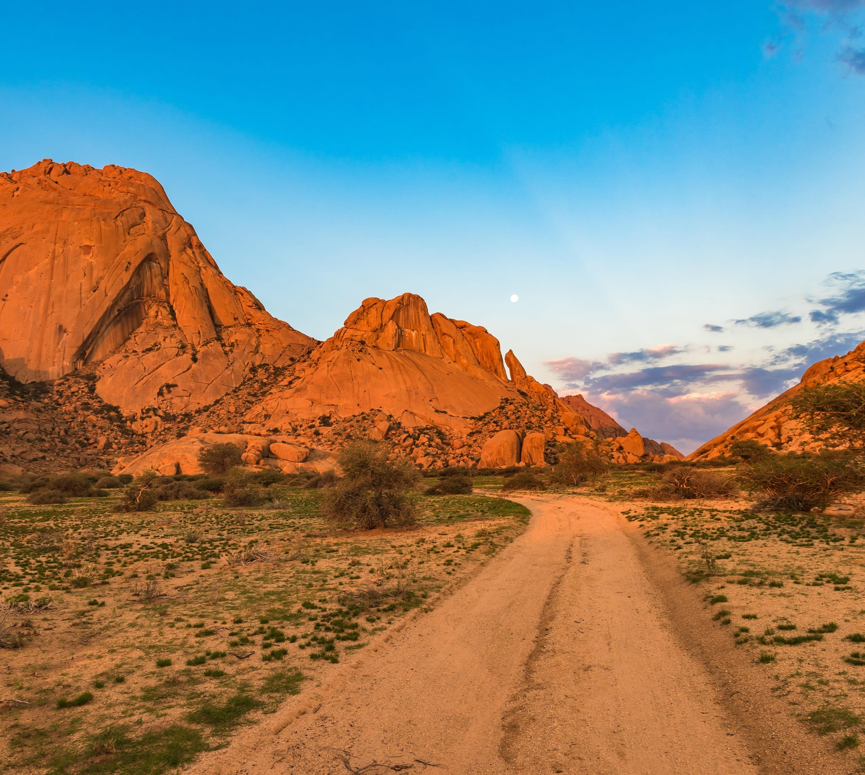 152 km nordöstlich von Swakopmund erhebt sich der markante Berg knapp 700 m aus der Ebene der Namib und 1728 m über den Meeresspiegel. Wenn du bis auf den Gipfel kraxeln willst, brauchst du einen Tag Zeit, keine Kletterausrüstung, aber Fitness und einen lokalen Guide. Einen Führer benötigst du wegen der Zerstörungswut vorheriger Besucher inzwischen auch für die Felsmalereien am Massiv.