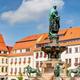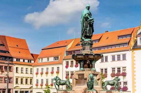 Beeindruckend ist dieser Platz mit dem Brunnendenkmal (1898) Markgraf Ottos I. von Meißen („Otto der Reiche“), der die Stadt 1168 gründete.