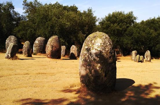 Wer die Comics um Asterix und Obelix gelesen hat, kennt die sogenannten Hinkelsteine - westlich von Évora ragt mit dem Menir dos Almendres ein Vertreter dieser Hünensteine auf. Er ist ca. 4 m hoch und typisch für die Megalithkultur, die ein Stückchen weiter mit dem Kromlech von Almendres einen echten Höhepunkt erreicht. Umgeben von Korkeichenhainen, verteilen sich mehr als 100 Monolithe über das abfallende Gelände. Diese formen einen Steinkreis (Kromlech), der aus dem 5.-4.Jh. v.Chr. stammt.