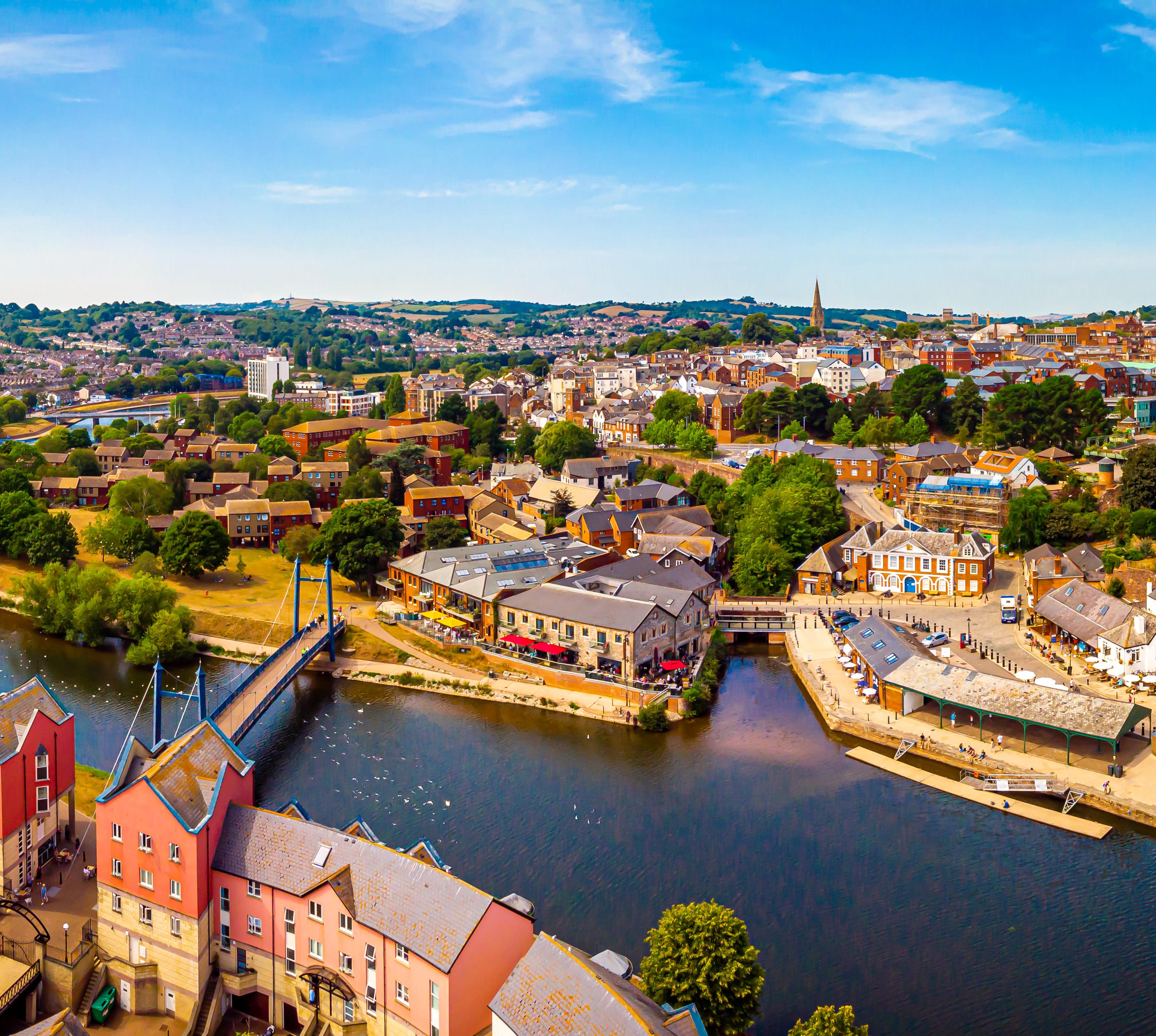 Die Hauptstadt Devons ist Universitätsstadt und einer der ältesten Bischofssitze Englands. Die gotische Kathedrale mit reicher Innenausstattung trägt eine herrliche Rosette an der Westfassade.