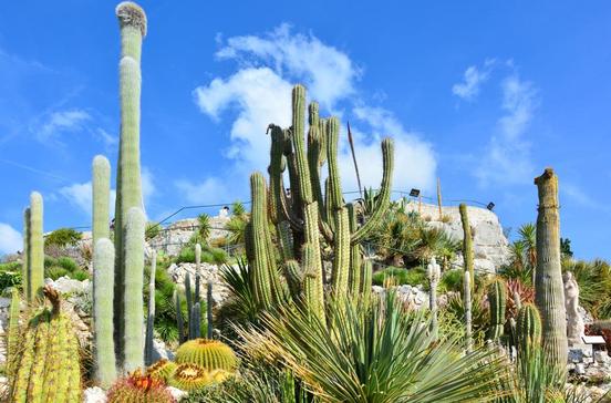 Hoch über dem Meer gedeihen an der Felswand im Tropengarten im Stadtteil Moneghetti exotische Kakteen. Neben den Aussichtsterrassen gehören als weitere Attraktionen die 60 m tief im Fels liegende Grotte de l‘Observatoire mit Versteinerungen und das Musée d‘Anthropologie Préhistorique mit einer Sammlung von Münzen, Schmuck und Knochenfunden dazu. Auf der Aussichtsplattform vor der Grotte ist der beste Picknickplatz.