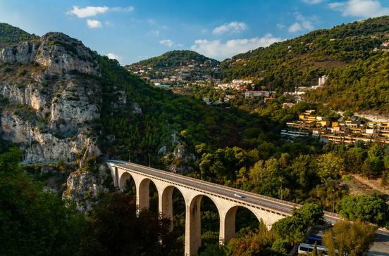 Die Straße Moyenne Corniche, die Schwester der Grande Corniche, war vor dem Bau der Autobahn die Hauptverkehrsstrecke zwischen Côte d'Azur und Riviera und ist im Sommer stark befahren.