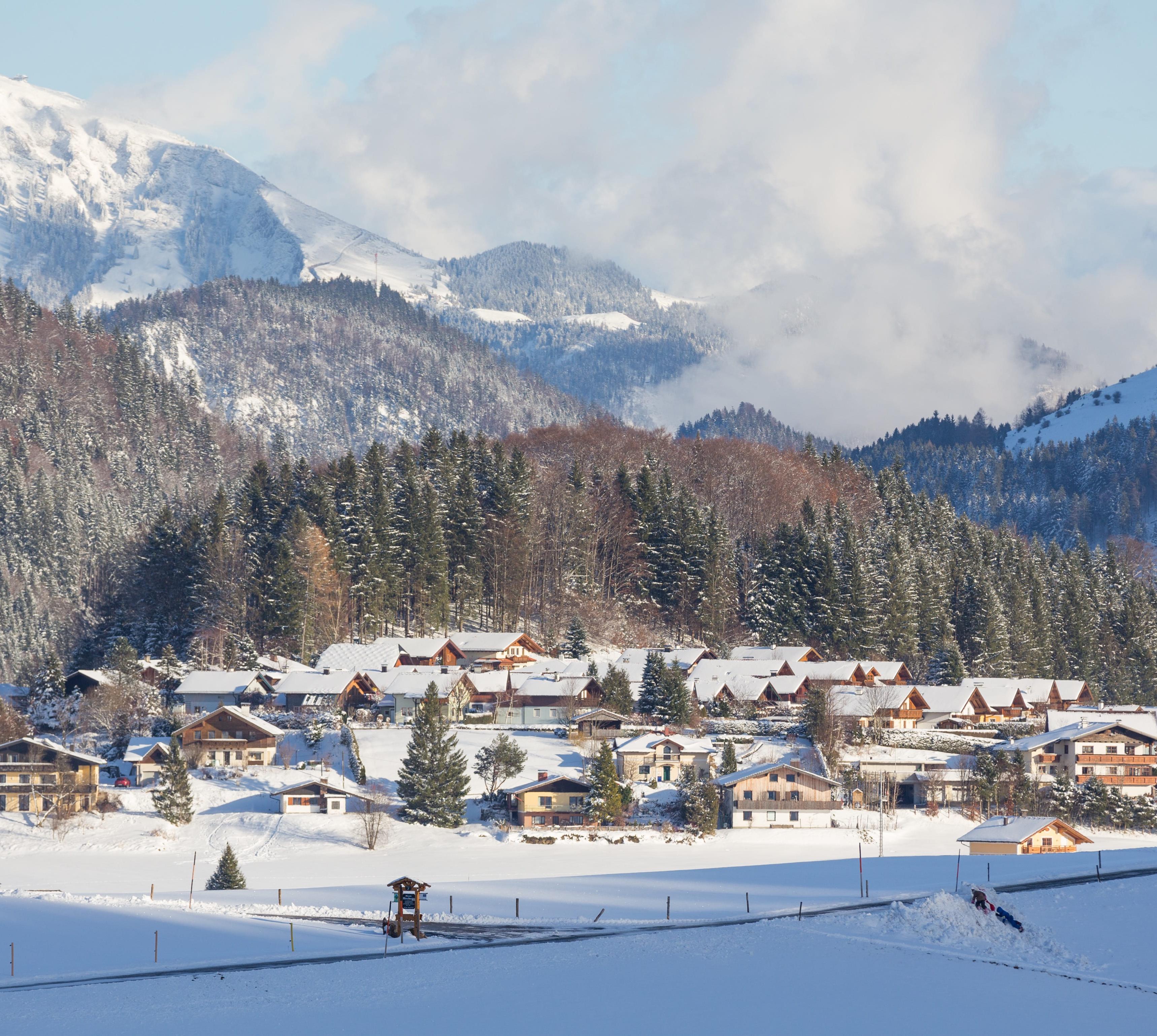 Faistenau liegt auf einem Hochplateau mit beeindruckendem Bergpanorama. Im Sommer blühen hier die Bergwiesen und im Winter gibt es perfekte Loipen für Skilangläufer.