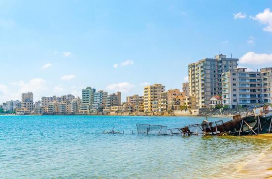 Varósha war bis 1974 das Touristenzentrum der Insel. Heute ist es eine Geisterstadt, denn die griechisch-zyprische Bevölkerung dieses Stadtteils musste fliehen. An Hochhäusern mit Einschusslöchern stehen noch 1974 aufgestellte Baukräne. Außer einem türkischen Offizierscasino gibt es kein einziges bewohntes Gebäude in Varósha, das durch einen Stacheldrahtzaun vom übrigen Famagusta abgetrennt ist. Den traurigen Anblick kannst du vom Strand vor dem Hotel Palm Beach am besten erleben.