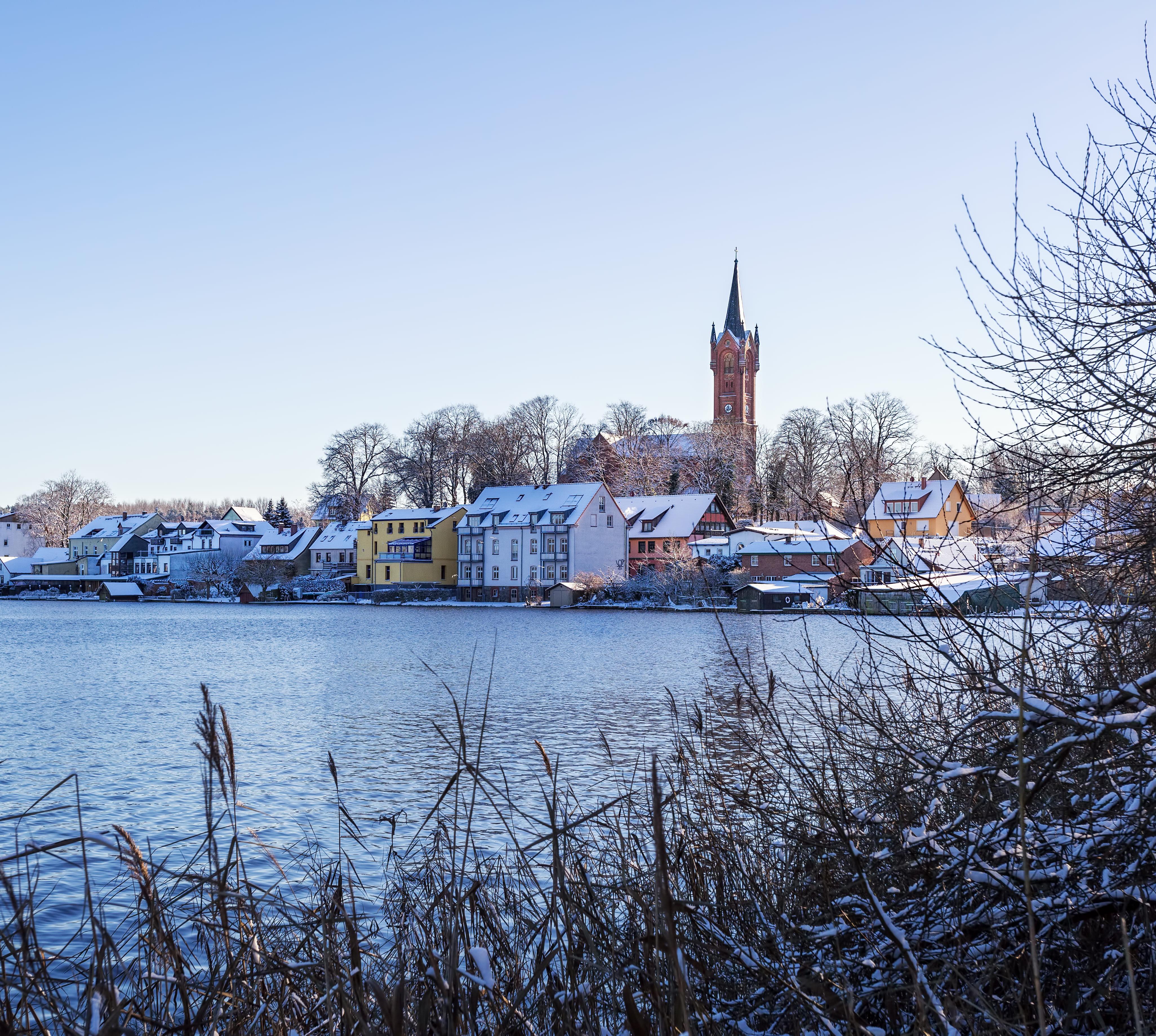 Sie thront über Feldberg und hat eine besondere Geschichte: Als 1870 die alte Holzkirche in Flammen aufging, wurde kurz darauf diese prächtige Basilika gebaut, diesmal aus brandsicheren Ziegeln. Der Luzinkanal, durch den du heute vom Haussee in den Breiten Luzin paddeln kannst, wurde extra angelegt, um die Steine mit Kähnen herüberzuschippern. Geh ruhig rein - das Christusgemälde ist alt und stammt von einem einheimischen Maler. Falls geschlossen ist: Der Kirchenschlüssel wird Ihnen im Pfarrbüro (Prenzlauer Str. 18) ausgehändigt.