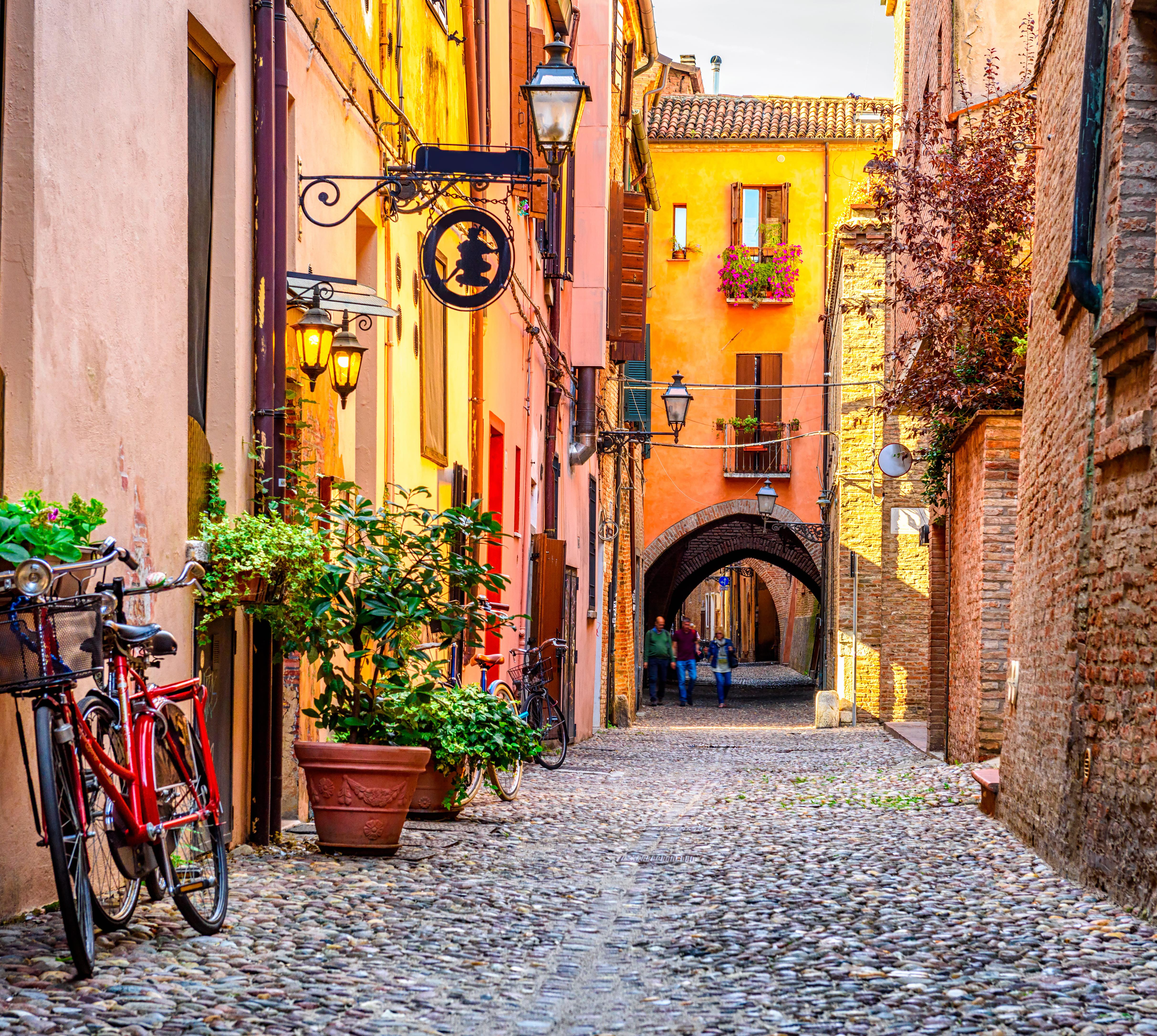 Erobere Ferrara wie die Einheimischen per Rad! An verschiedenen Stellen kannst du günstig Fahrräder mieten (Anbieter unter ferrarainbici.it und mimuovoinbici.it) – wo, sagt dir auch die Touristenauskunft, bei der du außerdem verschiedene l Karten für den ermäßigten Museumsbesuch bekommst.