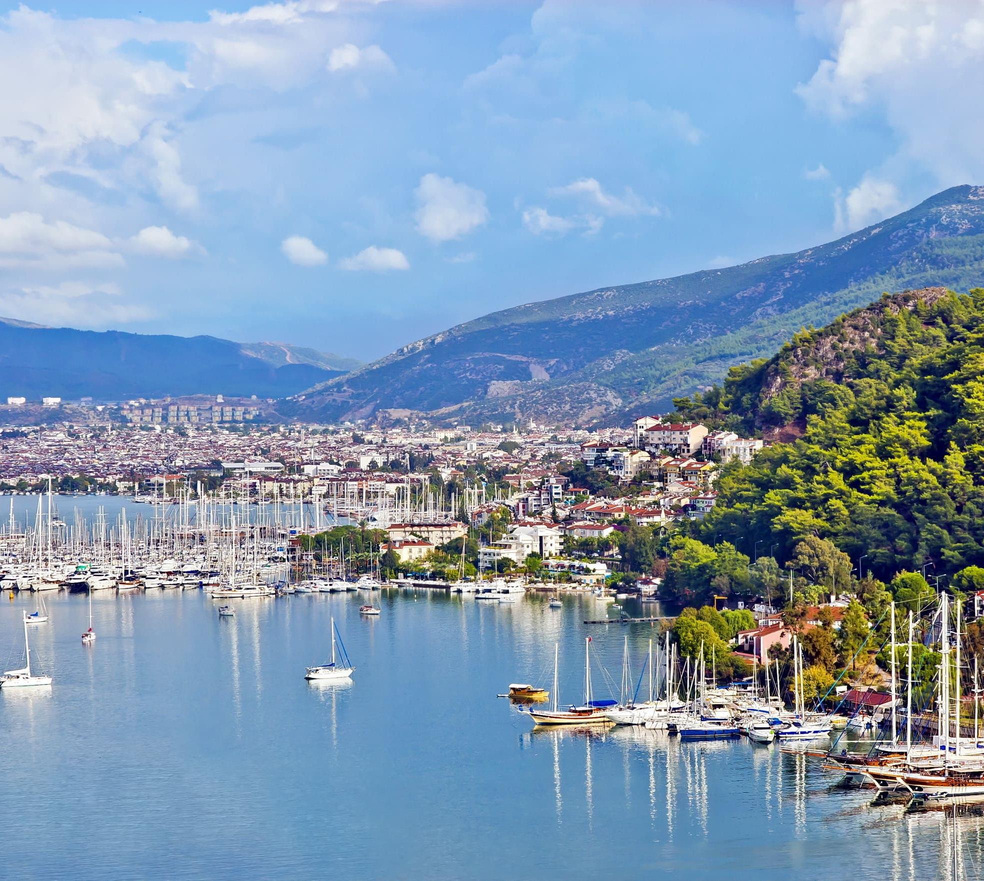 Sie liegt am gleichnamigen Golf, der weit ins Land hineinreicht und mit zahlreichen kleinen Inseln ein Paradies für Bootsausflüge und Wandertouren ist. Fethiye hat nette Hotels, eine schöne Promenade und inzwischen auch ein Nachtleben mit einer Bar Street. Was fehlt, sind innerstädtische Stadtstrände, weshalb sich die meisten Besucher auf die umliegenden Buchten verteilen. Der berühmteste Strand ist der von Ölüdeniz, der jedes touristische Werbeplakat der Türkei ziert.