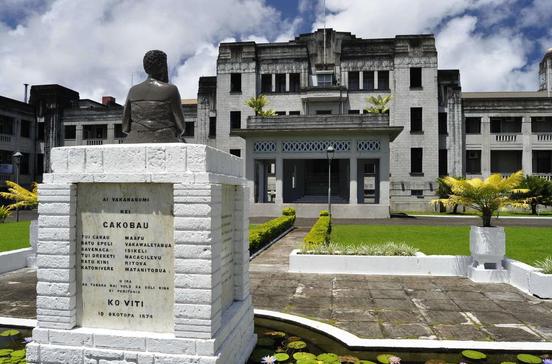 Schräg gegenüber dem ehrwürdigen, zzt. geschlossenen Grand Pacific Hotel befinden sich die Government Buildings (Queen Elizabeth Drive), Sitz des Premierministers. Die Turmuhr schlägt wie Londons Big Ben. Bis zum Putsch 1987 tagte hier das Parlament. Das Government House (Queen Elizabeth Dr.), nach einem Brand 1928 neu aufgebaut, ist der Öffentlichkeit nicht zugänglich. Frag im Visitors Bureau (EckeThompson/Scott Sts.) nach den Zeiten der Wachablösung vor dem Tor.