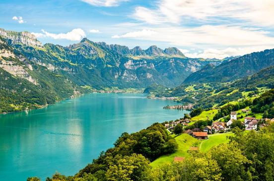 Wie ein Fjord schiebt sich der See zwischen die Glarner Alpen und die 2000 m hohen Felswände der Churfirsten. An seinen Ufern und den sonnigen Berghängen liegen idyllische Dörfer, die teilweise nur per Boot oder zu Fuß erreichbar sind. Von vielen Orten aus führen Lifte in die Berge.