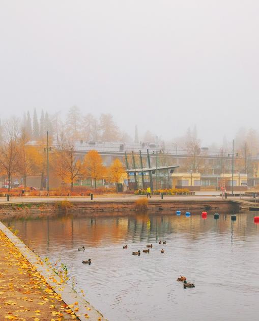 Die Dunkelheit kommt immer, gefühlt viel zu früh, und der Norden versinkt unter einer glitzernden Schneedecke. Die Seen gefrieren, am Nachthimmel tanzen Nordlichter. Jetzt werden Langlaufskier und Schneeschuhe ausgepackt, Touristen buchen Huskysafaris, Rentierschlitten und Schneemobile, die inzwischen auch als flüsternde Elektroversion verfügbar sind. Ein anschließender Saunagang ist Pflicht, und Hartgesottene hüpfen zur Abkühlung in ein Eisloch. Finnen begegnen den Naturgewalten mit landestypischer Hartnäckigkeit: Flughäfen funktionieren auch bei Extremfrost, Schneemassen werden routiniert beseitigt.
