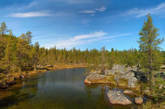 Das winzige sámi-Bergdorf im Nordwestzipfel Finnlands ist umgeben von den höchsten Bergen des Landes. Ein Rundweg führt durch das Naturschutzgebiet Malla zum Dreiländereck Finnland, Schweden und Norwegen. Auf den heiligen Berg Saana führen Wanderwege von 5 bis 12 km Länge. Zum höchsten Berg des Landes, Halti, führt die Kalottireitti-Route.