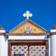 Der schneeweiße, weithin sichtbare Kuppelbau am Kraterrand von Firá ist eine der Landmarken der Insel. Er wurde erst 1956/57 errichtet, nachdem die alte orthodoxe Kathedrale von 1827 beim Erdbeben zerstört worden war. Schon auf den ersten Blick beeindruckt der Innenraum durch seine prachtvolle Ausstattung mit wertvollen Kristallleuchtern und einer kunstvollen Ikonostase. Das Schönste aber sind die großflächigen Malereien, die die Innenwände und -decken überziehen. Sie stammen von dem 1945 in Éxo Goniá auf Santorin geborenen und heute noch auf der Insel lebenden Maler Christóphoros Assímis und wurden von den orthodoxen Gläubigen der Insel finanziert. Wer den Darstellungen in dieser Mariä Lichtmess geweihten Kathe drale nur ein wenig Zeit widmet, wird den orthodoxen Glauben und die orthodoxe Kirchenkunst besser verstehen lernen. Betrachten Sie zunächst die Ausmalung der Kuppel. Sie bildet den höchsten Punkt im Kirchenraum, steht symbolisch für den Himmel. Deswegen ist in der Kuppelwölbung orthodoxer Kirchen fast immer Christus als Pantokrátoras, als Allesbeherrscher, dargestellt. In den Zwickeln der Kuppel sind hier wie fast überall in orthodoxen Kirchen die vier Evangelisten zu sehen. Sie leiten von der himmlischen Sphäre zur irdischen des Kirchenraums über – denn nur durch die Evangelisten haben die Menschen ja von Christi Erscheinen gehört. Blicken Sie nun zunächst einmal nach vorn in Richtung Ikonostase. Über dieser Bilderwand, die den Kirchenraum vom Altarraum trennt, ist Mariä Verkündigung dargestellt. Von links eilt der Erzengel Gabriel herbei, der Maria verkündet, dass sie Gottes Sohn gebären wird, und damit beginnt die Lebensgeschichte Jesu. Ihr Ende ist in unmittelbarer Nähe zu sehen, nämlich auf der Unterseite des Bogens zum Altarraum. Da ist Christi Himmelfahrt dargestellt. Die verschie- densten Stationen der Lebens- und Leidensgeschichte Jesu sind das Thema weiterer Fresken im übrigen Kirchenraum. In der Apsis sind zudem einige Stationen aus dem Marienleben verewigt.