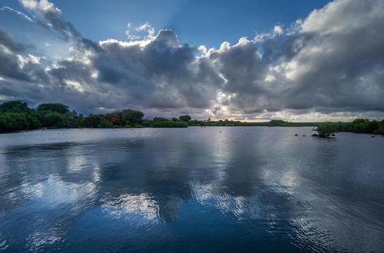 Seinen Namen verdankt der winzige Ort dem Wasser, das hier außergewöhnlich schimmert. Von der Landstraße aus gibt es immer wieder Abzweigungen durch den Filao-Hain zu kleinen Badebuchten. An Wochenenden herrscht dort volksfestartige Stimmung, etwa an der Plage de Palmar.