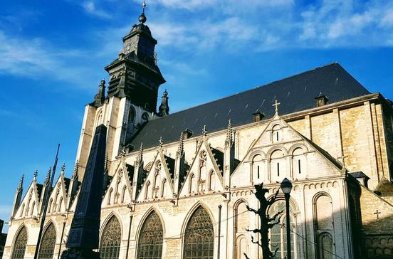 Beim ersten Blick auf diese prächtig restaurierte Kathedrale am Hang zwischen Ober- und Unterstadt mögen sich manche fragen, ob Brüssel ein Notre-Dame-Plagiat besitzt. Die gotische Fassade, Fenster und Zinnen und vor allem die großen Doppeltürme erinnern stark an das Pariser Vorbild. Allerdings nur äußerlich, drinnen ergeben die Elemente aus Renaissance und Barock ein ganz eigenes Bild: Die meisten der bunten Kirchenfenster haben die Kriege unbeschadet überstanden und so strahlt im nördlichen Teil des Querschiffs noch immer das Werk des Antwerpener Glasmalers Jean Heck von 1537.Es zeigt Charles V. und seine Ehefrau Isabella von Portugal kniend vor dem heiligen Sakrament, an ihrer Seite ihr Schutzheiliger Karl der Große und Elisabeth von Ungarn. Im südlichen Teil leuchtet ein 1538 ebenfalls von Jean Heck geschaffenes Fenster: Ludwig II. von Ungarn und seine Frau Maria, die Schwester von Charles V., die vor der Dreifaltigkeit kniet, mit St. Louis und der Jungfrau mit Kind hinter ihnen. Die Fenster dimmen das hereinfallende Licht auch heute noch wie einst von den Bauherren vorgesehen und schaffen so eine Atmosphäre, in der das „Jüngste Gericht“ von Frans De Vriendt über dem Portal besonders einprägsam wirken soll und in dem der Renaissancealtar aus Alabaster hinter dem Chor prächtig leuchtet. Besondere Beachtung verdient auch die Kanzel. Die barocke Darstellung der Vertreibung von Adam und Eva aus dem Paradies und der Legende vom Weinstock bildet einen Höhepunkt Brüsseler Holzschnitzerei. Unter dem Kirchenschiff befinden sich Überbleibsel einer viel älteren romanischen Kirche, unter dem Chor die Gräber der Herzöge von Brabant. Nicht nur sehr sehens-, sondern auch hörenswert ist die im Jahr 2000 eingeweihte monumentale Orgel von Gerhard Grenzing gegenüber der Kanzel. Regelmäßig erklingen die majestätischen Glocken und das Carillon, das liebliche Glockenspiel. Im April und Mai nisten in den Türmen Falken. Ihr Leben wird von Webcams auf zwei Bildschirme übertragen.