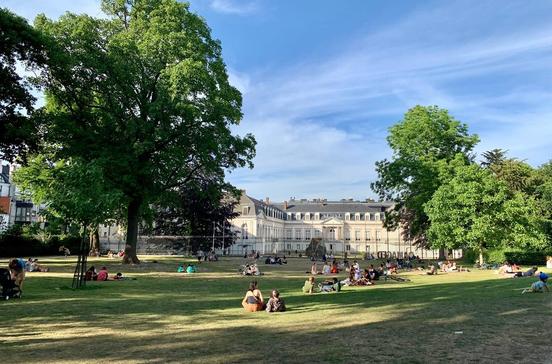 Vier verborgene Pforten führen in diese Oase der Ruhe. Passende Poesie von Marguerite Yourcenar, die in Brüssel zur Welt kam, stimmt an der Rue aux Laines ein, wo ihre Verse in die Treppenstufen und Stützmauern gemeißelt sind. Der englische Stil kontrastiert mit der Rückseite des neobarocken Palais d’Egmont, der Residenz des belgischen Außenministers. In der Orangerie lockt ein elegantes Caférestaurant mit schattiger Terrasse. Ein Geheimtipp für alle, die die Antiquitätenhändler an der Place du Grand Sablon abklappern oder um die schicke Place Louise einkaufen.