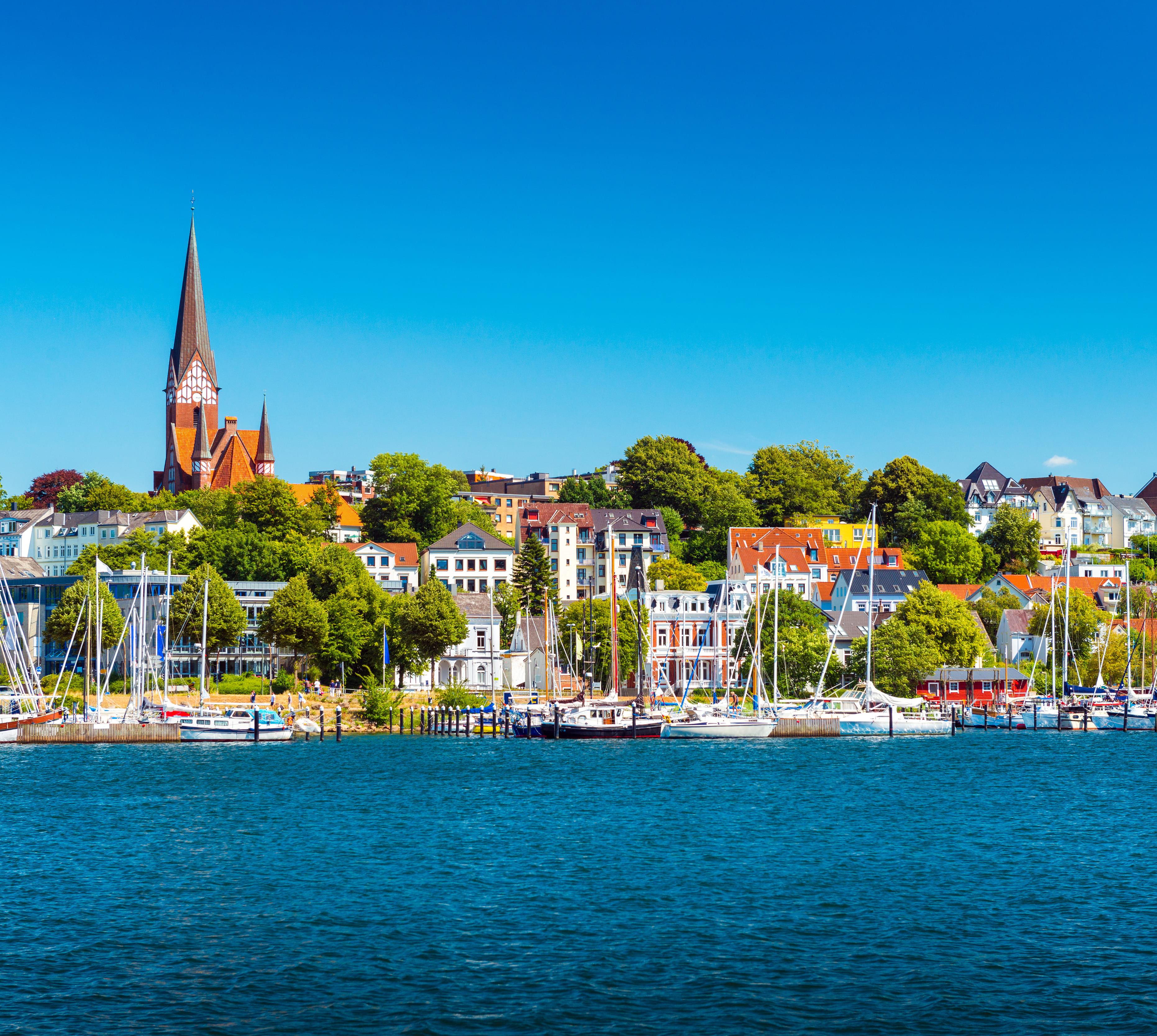 Die nördlichste Stadt Deutschlands mit ihren 100 000 Einwohnern, wo man mit einem Bein schon fast in Dänemark steht, ist alles Mögliche, aber nicht langweilig. 700 Jahre Handel und Hafen – darunter über 400 Jahre unter dänischer Krone – haben der Stadt ihren Stempel aufgedrückt. Früher segelte von hier sogar die mächtigste Handelsflotte der Ostsee los. Heute bummelt man entspannt durch versteckte Innenhöfe und an alten Kaufmannshäusern vorbei und trinkt einen Cocktail an der Hafenspitze.