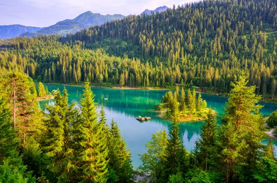 Die als Unesco-Welterbe geschützte Gebirgslandschaft rund um den Piz Sardona ist Natur pur. Der türkisblau leuchtende Caumasee, gespeist von unterirdischen Quellen und nur zehn Fußminuten von Flims entfernt, ist der perfekte Start. Achtung: Das Wasser ist auch im Sommer gerade mal kühle 19 Grad warm; Empfindliche mieten ein Tretboot.