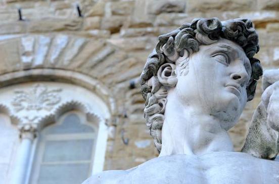 Der David von Michelangelo ist die erste Monumentalstatue der Hochrenaissance und gilt als die bekannteste Skulptur der Kunstgeschichte. Die Figur stellt den biblischen David dar, als er den Kampf gegen den Riesen Goliath beginnt. Vor dem Palazzo Vecchio steht heute nur noch die Kopie, das Original ist in der Galleria dell'Accademia zu finden.