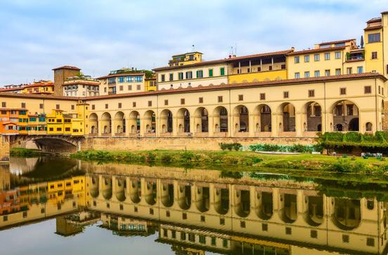 Sie beherbergen eine der reichhaltigsten und berühmtesten Gemäldesammlungen der Welt und sind eine der Hauptattraktionen der Stadt: Das Wort „Uffizien“ (auf Italienisch uffici) bedeutet „Büros“, und die Bezeichnung kommt daher, dass das Gebäude, das im Auftrag Cosimo I. de’ Medici 1559–81 nach Plänen Giorgio Vasaris erbaut wurde, dazu diente, die Ministerien und Ämter von Florenz aufzunehmen. Die Uffizien wurden jedoch nie als Büros genutzt, weil schon der Sohn Cosimos I., Francesco de’ Medici, begann, seine Kunstsammlung dort unterzubringen. Er ließ von Bernardo Buontalenti dafür extra die Tribuna errichten. Dieser achteckige Raum war im Prinzip schon Jahre vor der offiziellen Umwandlung der Uffizien ein Museum, und so kann man die Uffizien zu den ältesten Museen der Welt zählen. Seit 2013 darf man auch die sogenannten Nuovi Uffizi im ersten Stock besichtigen, und jüngst wurden weitere 14 Säle auf 1100 m2 neuer Ausstellungsfläche eröffnet. Die Besichtigung beginnt in der zweiten Etage. Hier sind die Werke in chronologischer Reihenfolge vom 13.bis zum 15.Jh. und nach Schulen geordnet ausgestellt. Schwerpunkt bildet die italienische Renaissance. Auf den breiten Korridoren sind griechische und römische Statuen sowie flämische Gobelins zu sehen. Die kostbarsten Statuen stehen auf eigens für sie angefertigten Sockeln in der Tribuna. Wenn man dem Wegweiser folgt, kommt man zuerst zu den großen gotischen Altartafeln von Cimabue und Giotto, dann zu Werken der Sieneser Schule des 14.Jhs. und den großen Malern der Frührenaissance: Masaccio, Piero della Francesca und natürlich auch Sandro Botticelli. Der Botticelli-Saal ist sicherlich bei Touristen der bekannteste. Manch einer mag denken, dass er die berühmten Gemälde wie „Die Geburt der Venus“ und „Der Frühling“ schon nicht mehr sehen kann, da sie in Form von Souvenirartikeln in der ganzen Stadt erworben werden können, aber spätestens wenn man den Saal betritt und die echten Werke bewundern kann, wird man ihre Faszination verstehen. Es folgen Werke von Leonardo da Vinci wie „Die Anbetung der Könige”. Auf der Westseite des Gebäudes hängen Gemälde von Tizian („Venus von Urbino“), von den aus Venedig stammenden Künstlern Veronese, Tintoretto und Caravaggio. Im Saal 35, der Sala Rossa, befindet sich ein weiteres der vielen Highlights der Uffizien: das „Tondo Doni“, eines der bekanntesten Gemälde Michelangelos. Nicht verpassen: eine Kaffeepause auf der Dachterrasse inklusive bester Aussicht über die Piazza della Signoria! Schließlich gelangt man im ersten Stockwerk zum neuen Teil der Uffizien. Die Sale Blu, die blauen Säle, sind spanischen, französischen, flämischen und niederländischen Künstlern aus dem 16.und 17.Jh. gewidmet (Rubens, Rembrandt und van Dyck). Die anschließenden Sale Rosse beherbergen größtenteils Werke des Florentiner Manierismus, in denen besonders Schöpfungen von Andrea del Sarto und Raphael herausragen. Besonders hervorzuheben sind weiterhin Werke von Rosso Fiorentino und Pontormo sowie die famosen Medici-Porträts von Bronzino. Der Rundgang führt weiter vorbei an Gemälden von Correggio und Parmigianino bis zur venezianischen Malerei und endet in den Sale Gialle, den gelben Sälen, die Werke aus dem 17.Jh. präsentieren. Um die oft sehr lange Warteschlange (bis zu vier Stunden!) zu vermeiden, sollte man die Tickets unbedingt im Internet im Voraus reservieren. Es werden auch Führungen angeboten.