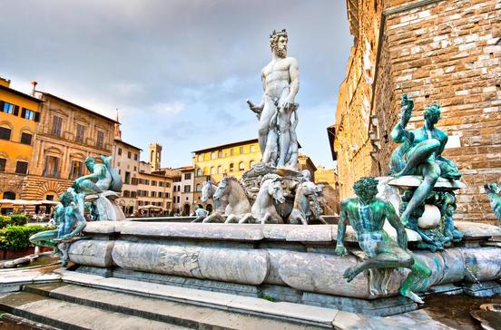 Der Neptunbrunnen wurde zwischen 1563 und 1575 von dem italienischen Frühbarock-Bildhauer Bartolomeo Ammanati geschaffen. Er gehört zu den beliebtesten Foto-Motiven der Touristen. Die Florentiner nennen ihn liebevoll "Il Biancone" (der große Weiße).