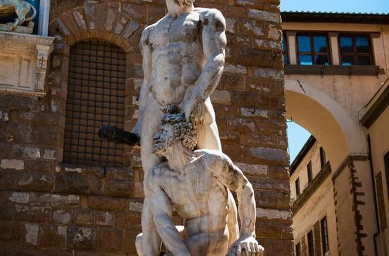 Die Doppelplastik Herkules und Cacus von Baccio Bandinelli wurde 1533 enthüllt. Sie steht auf der Piazza della Signoria und stellt den Kampf zwischen Herkules und Cacus um die Rinder des Geryon dar. Cacus muss für den Diebstahl der Rinder mit dem Leben bezahlen.