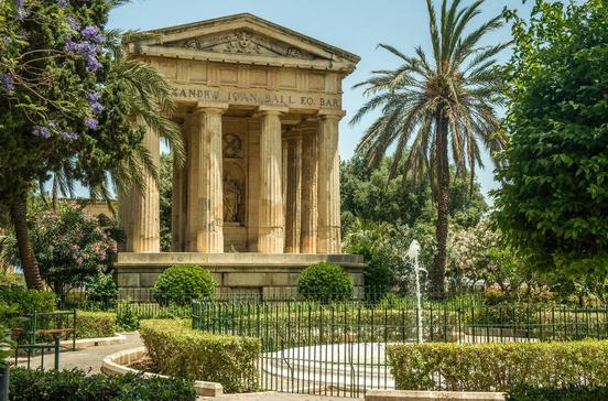 In der kleinen Parkanlage kannst du zum „Sehmann“ werden. Mit einem auf Griechisch getrimmten Tempelchen im Rücken, das an den ersten britischen Hochkommissar Maltas erinnern soll, sitzt du im Blütenmeer und schaust den tatsächlichen Seemännern ziemlich hautnah bei der Arbeit zu: Lotsen, die von Bord der Frachter und Kreuzfahrt- riesen gehen, Schleppern, die beim Bugsieren helfen, und Kapitänen, die die enge Hafenein- und -ausfahrt zu treffen versuchen.