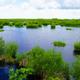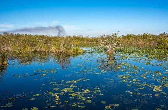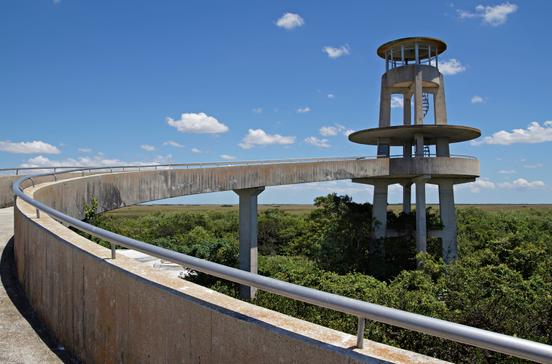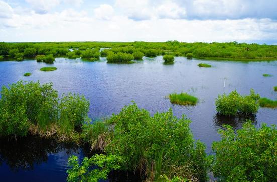 Die Everglades sind das größte subtropische Feuchtgebiet Nordamerikas mit Hunderten Fisch- und Vogelarten sowie vielen Pflanzen, die nur hier gedeihen. Fast ein Siebtel der Gesamtfläche von rund 50.000 km2 wurde bereits 1947 auf Drängen von Naturschützern zum National Park erklärt. Weitere 25.000 km2 sind seit 1974 im Big Cypress National Preserve geschützt. Das einzigartige Biotop reicht vom Lake Okeechobee bis zu den Ten Thousand Islands im Südwesten Floridas. Dabei handelt es sich um einen im Kern 80 km breiten Fluss mit ungewöhnlich niedrigem Wasserstand. Seggen und sonstige Riedgräser verbergen nicht nur das Wasser, sondern auch die extrem langsame Strömung. Da der Höhenunterschied zwischen dem Inland und dem Golf von Mexiko nur 3 m beträgt, benötigt das Wasser rund ein Jahr, bis es nach 160 km im Meer ankommt. Die Sumpf- und Marschlandschaft, an leicht erhöhten Punkten von kleinen Waldinseln durchsetzt und von natürlichen Wasserläufen durchzogen, gilt als eines der empfindlichsten Ökosysteme der Welt.