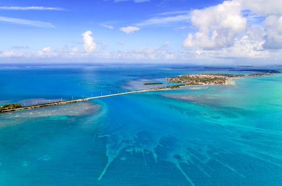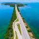 Der Overseas Highway, mit über 40 Brücken, darunter die 11 km lange Seven Mile Bridge, ermöglicht die Autofahrt über das offene Meer.