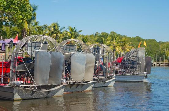 Laut und nur bedingt umweltverträglich sind Ausflüge mit Propellerbooten durch die flachen Gewässer der Everglades. Dies ist generell auch nur außerhalb der Grenzen des Nationalparks gestattet. Wer dennoch an Bord gehen möchte, kann dies z. B. bei Wooten‘s oder am östlichen Eingang des Parks auf der Everglades Alligator Farm.