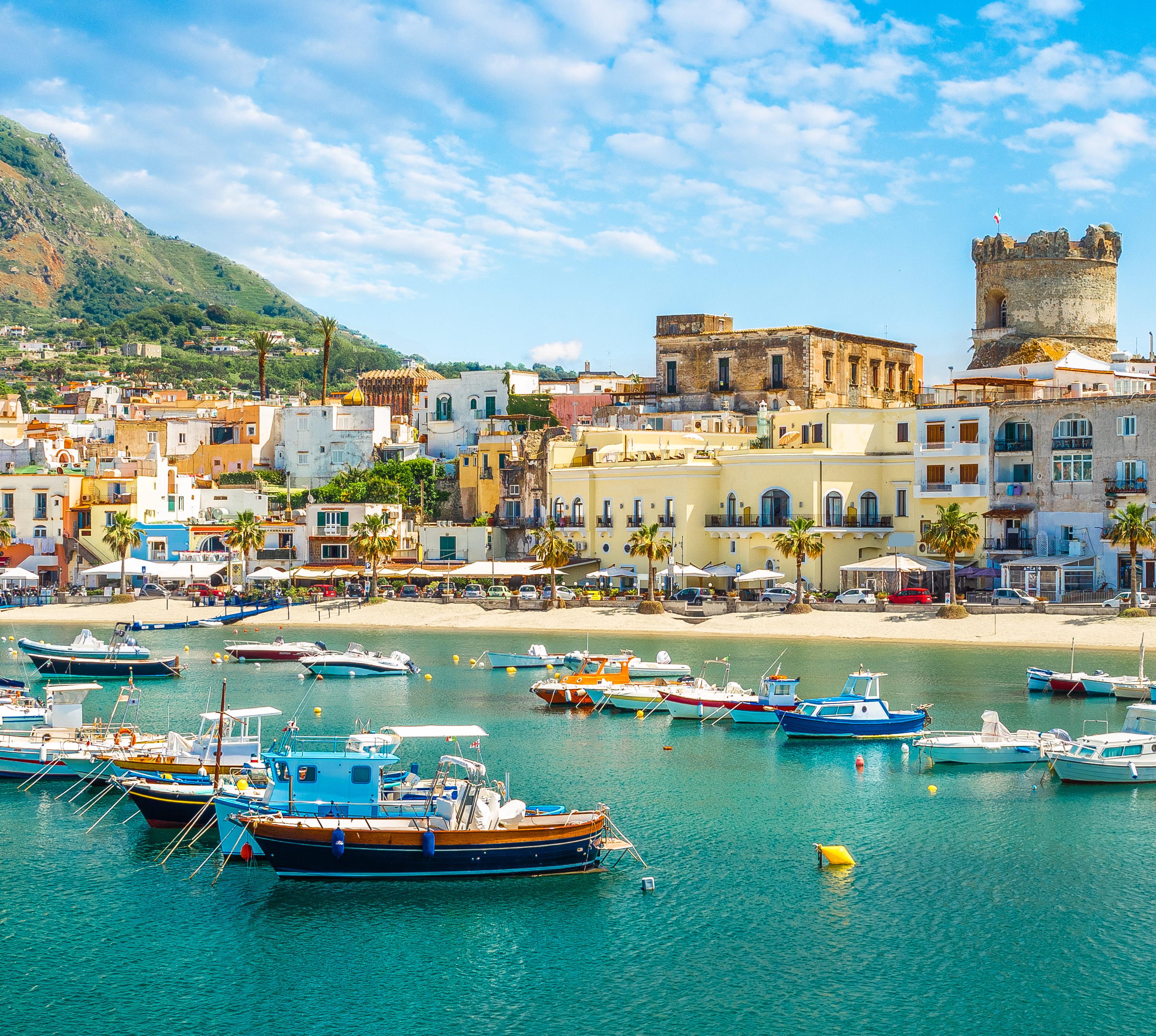 Ischia mag nicht allzu groß sein, aber Insel-Abenteuer warten hier überall auf dich. Lass dich mit dem Taxiboot zu den schönsten Buchten schippern, tanze bei einem Spaziergang im Krater des Monte Rotaro auf dem dampfenden Vulkan und feiere am Spiaggia di Citara bei Livemusik, während hinter dir die Sonne im Meer versinkt. Und wenn dir von so viel Action die Füße schmerzen, ist der Weg zur nächsten heißen Quelle nie weit.