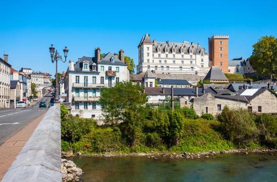 Über dem Gave de Pau erhebt sich die stattliche Schlossanlage. Mehr als acht Jh. wurde an ihr gebaut, sodass nun verschiedene Stile miteinander verschmelzen. Ebenso vielfältig ist die Innenausstattung, u.a. mit einem Schildkrötenpanzer Henris IV., der diesem als Wiege gedient haben soll.