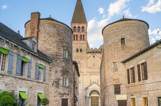 Der Turm von St-Philibert prägt das Flusspanorama und die Altstadt. Keimzelle ist das Grab des 179 enthaupteten Valerian, über dem ein frühchristliches Kloster entstand. Zugewanderte Mönche der Atlantikinsel Noirmoutier bauten es aus, errichteten aber nach einem Brand eine neue Kirche für ihren Schutzheiligen Philibert. Die überragende Bedeutung des Bauwerks liegt darin, dass es hier erstmals gelang, eine weite Halle mit einem Steingewölbe zu decken und dennoch Fensteröffnungen in der Dachzone zu belassen. Entsprechend mächtig sind die tragenden Säulen. Schmuck wurde sparsam eingesetzt, doch kannst du an einem Bogen einen Handwerker und die Inschrift „Gerlanus“ entdecken – möglicherweise ein besonders frühes Künstlerporträt. Die erhaltenen Teile des Klosters beherbergen heute das Centre International d’Études Romanes.