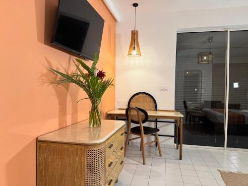 Die Studios im Domaine de l'Anse Ramier verfügen über ein helles Dekor, Holzmöbel und viel Tageslicht.