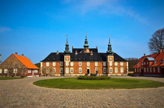Eher schlicht und funktional erscheint das königliche Jagdschloss, das bis 1746 immer wieder erweitert wurde. König Frederik VII. lebte hier zuletzt Mitte des 19.Jh. mit seiner bürgerlichen Frau Louise Rasmussen, der späteren Gräfin Danner. Zu sehen gibt es u.a. Waffen und Pfeifen des Königs.