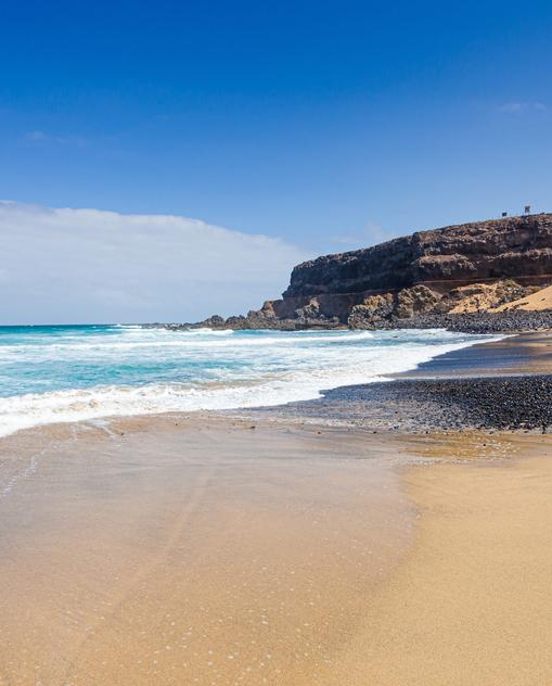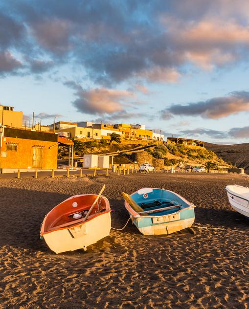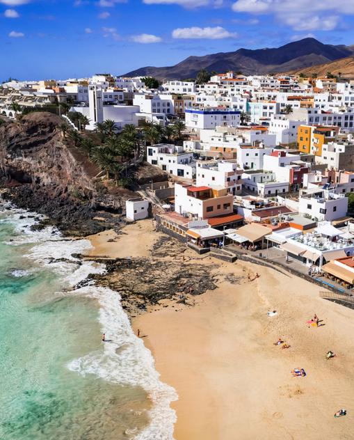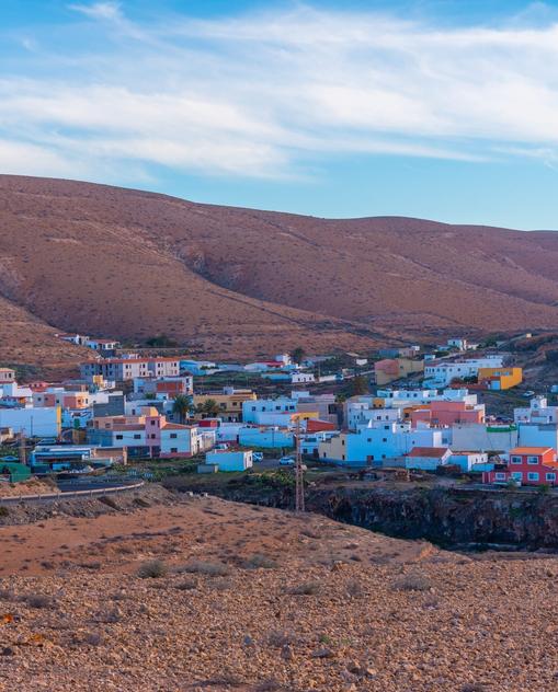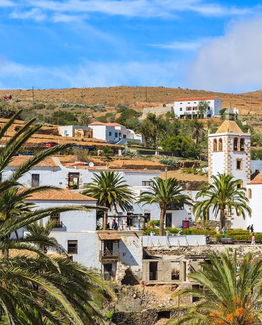 Die Insel bietet vielmehr ein Kontrastprogramm zur Reizüberflutung. Kein Besichtigungsstress gefährdet die Erholung. Es gibt weder antike Gemäuer noch berühmte Museen. Dennoch solltest du auf einer Rundfahrt oder besser auf einer geführten Wanderung auch einmal die verborgenen Attraktionen aufspüren – ob Schluchten, Vulkankrater oder Dorfkirchen –, die dir den „Geist“ der Insel nahebringen. Oder eine Siesta in einem kleinen Fischerort oder einem Bergdorf halten. Denn in den älteren Ortschaften herrscht vor allem eines: Ruhe. Da sitzt man vor der Dorfkirche unter schattigem Blätterdach, sieht einem Hibiskus beim Blühen zu, die Sonne malt helle Flecken aufs Pflaster, und die Zeit steht still. Beruhigend wirkt auch die Landschaft. Sie variiert nur wenige Themen: zu Kuppen geschliffene Vulkankegel, Kerbtäler, Lavageröll, ein paar Palmenoasen, darin verstreut eine Handvoll kleiner Bergorte, kaum so viele Fischerdörfer. Variantenreich und schön aber sind die Küsten. Da gibt es die kilometerlangen, hellen, feinsandigen Strände der Halbinsel Jandía, den fast weißen Dünenstrand bei Corralejo, die dunkelkiesigen, fast schwarzen kleinen Buchten vor den Fischerorten im Süden Maxoratas, des Inselhauptkörpers, und im Westen wild umtoste Klippen.