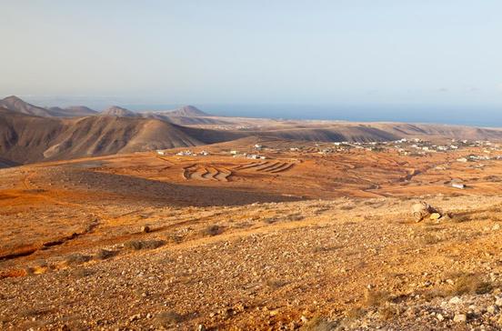 Östlich von Tindaya führt eine Serpentinenstraße bergauf zu einem Aussichtspunkt, dem Mirador Montaña de la Muda. Dort gibt es einen Parkplatz, von dem ein Fußweg zur eigentlichen Aussichtsplattform mit einer erklärenden Tafel führt (Infotexte Span./Eng.). Von hier überblickt man einen Großteil des Nordwestens der Insel, vor allem aber hat man einen tollen Blick auf den heiligen Berg Tindaya. Wenn du frühmorgens kurz nach Sonnenaufgang hier bist, erlebst du dessen Gesteinsfärbung besonders intensiv. Weiter führt die Straße ostwärts in das vom Tourismus bisher weitgehend verschonte Hochtal von Vallebrón mit seinem kleinen Kirchdorf. Dort hat sich noch mehr als andernorts auf der Insel ein wenig traditioneller Ackerbau erhalten – dank der etwas reichlicher als sonst fallenden Niederschläge. Und wenn es regnet, gibt es nirgends gibt es solch eine Blütenpracht! Zwischen den Feldern wachsen Johannisbrot- und Feigenbäume. Das Tal ist als Landschaftsschutzgebiet ausgewiesen.