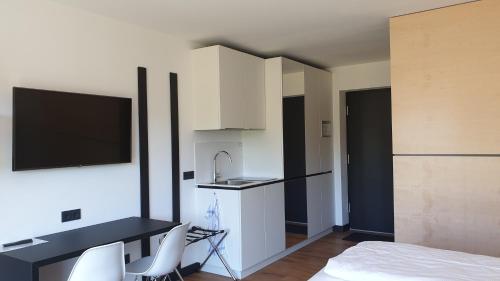 Einige Wohneinheiten haben außerdem eine Küchenzeile – ausgestattet mit einem Kühlschrank, einer Mikrowelle und einer Herdplatte.