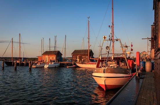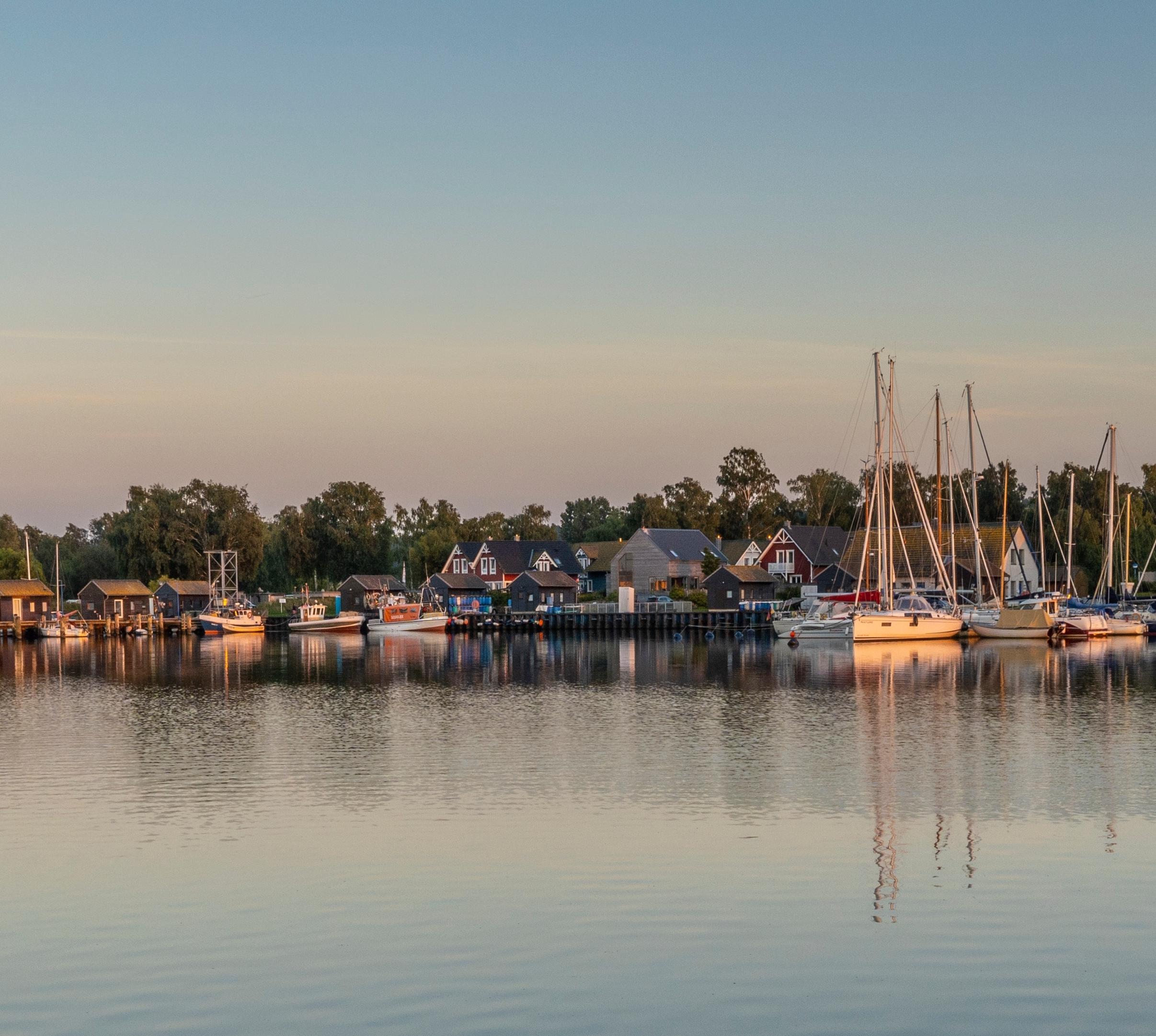 Vor vielen rohrgedeckten Bauernhäusern hängen hier Fischernetze zum Trocknen, Boote sind am Ufer vertäut. Der linke Weg am Ortseingang führt zum Sportboot- und Fischereihafen sowie dem Restaurant Alte Bootswerft. Auf der Terrasse genießt man ein Fischgericht oder einen Snack und schaut dabei den Freizeitkapitänen und Fischern zu.