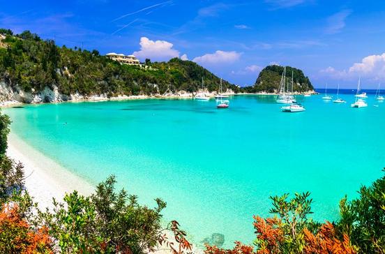 Auto stehen lassen, rauf aufs Boot! Von Amoudiá, Pára und Sivóta aus starten täglich recht urige Dampfer hinüber zur kleinen Insel südlich von Korfu. Da leben etwa 2200 Menschen in einem Olivenurwald aus über 200 000 knorrigen Bäumen. Angelegt wird im Hauptort Gaíos mit seinen vielen Villen aus dem 19.und frühen 20.Jh. Da geht man spazieren, setzt sich auf die kleine Platía direkt am Meer, das wegen einer vorgelagerten Insel hier eher als Fluss erscheint. Danach geht es weiter in die Buchten der noch viel kleineren Insel Antípaxos, wo das Boot ankert. Hier haben Sie Zeit für ein Bad im absolut klaren türkisfarbenen Wasser.