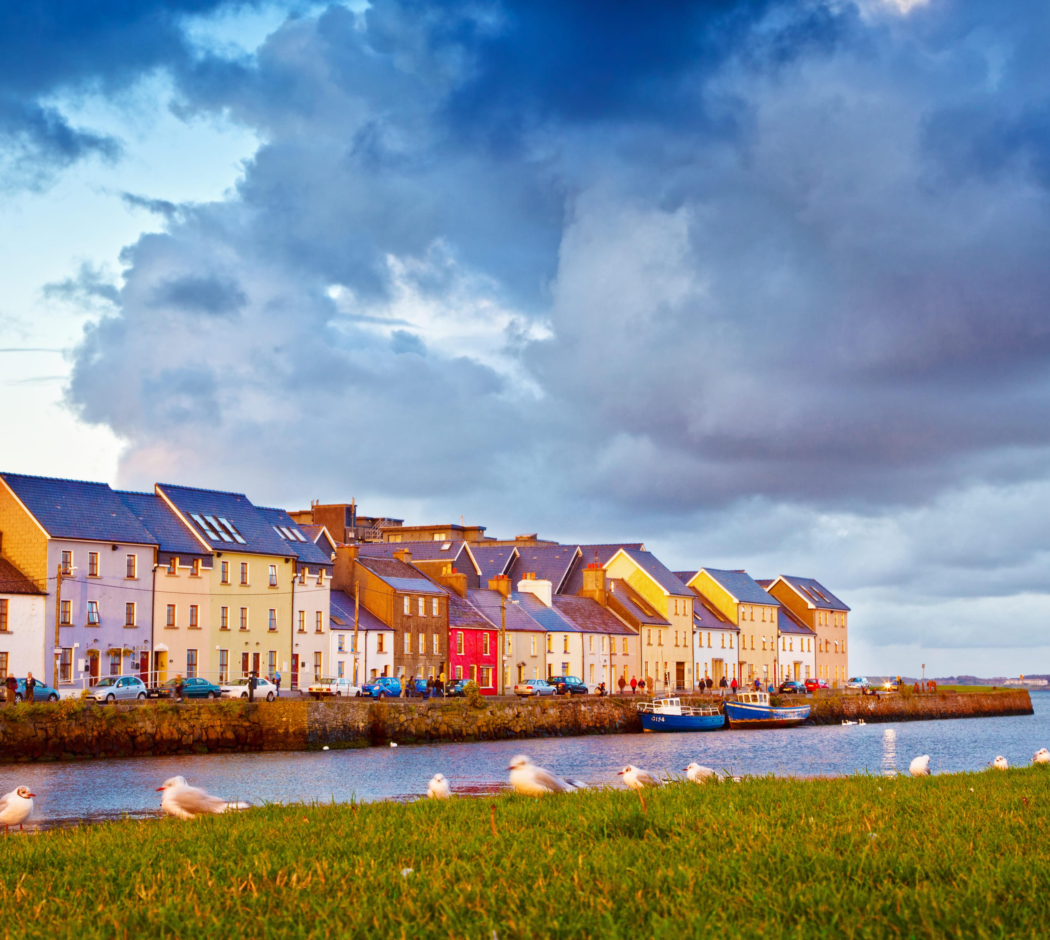 Galway ist eine pulsierende Stadt mit vielen kleinen, verwinkelten Kopfsteinpflastergassen aus der Zeit des Mittelalters, die besonders im Sommer von vielen Touristen besucht wird. Man flaniert, kauft ein oder sieht Straßenkünstlern im grünen Herzen der Stadt, auf dem Eyre Square, zu.