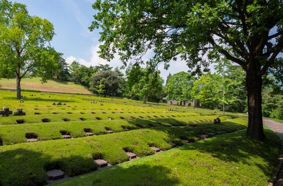 Auf dem 1967 eingeweihten Friedhof liegen 21.951 Deutsche begraben, die während des Zweiten Weltkriegs in Norditalien gefallen sind. Zu großen Kontroversen kam es, als bekannt wurde, dass auf dem Friedhof nicht nur Opfer, sondern auch Täter liegen, so SS-Sturmbannführer Christian Wirth, der mehrere Konzentrationslager geleitet hat. Er hatte in der sogenannten Aktion Reinhardt eine leitende Funktion inne und war so für den Tod von 2 Mio. Juden und 50.000 Sinti und Roma mitverantwortlich. Der Volksbund Deutsche Kriegsgräberfürsorge pflegt im Auftrag der Bundesrepublik Deutschland die Gräber, die nach geltendem Völkerrecht auf Dauer zu erhalten sind. Auf einer Informationstafel ist zu lesen: "Auf diesem Friedhof liegen auch die Gebeine von Personen, die für Kriegsverbrechen führend verantwortlich waren. Ihre Verbrechen sind uns eine ständige Mahnung".