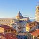 Der 1118 geweihte Dom in Form eines lateinischen Kreuzes ist das Meisterwerk pisanisch-romanischer Architektur. Spektakulär die Fassade mit vier Galerien feingliedriger Marmorsäulen, die Bronzetüren vorne und hinten mit Szenen aus dem Neuen Testament sowie die ovale Kuppel. Sie ist im Inneren mit byzantinischen Mosaiken geschmückt. Bemerkenswert sind auch die zweifarbigen Spitzbögen, die beidseitig das Langhaus durchziehen, die gotische Kanzel von Giovanni Pisano (1301-1311) mit szenischen Reliefs, das Grabmal des deutschen Kaisers Heinrich VII. sowie der Bronzeleuchter, mit dessen Hilfe Galileo Galilei dem Geheimnis der Pendelbewegung auf die Spur gekommen sein soll.