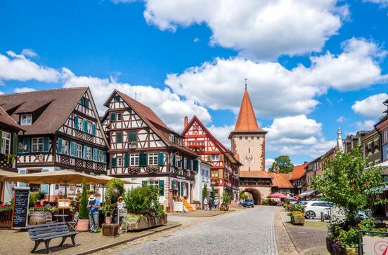 Teile der mittelalterlichen Stadtbefestigung von Gengenbach (10 600 Ew.) sind erhalten, etwa das Schwedentor, das Kinzigtor (14 Jh.) mit dem pyramidenartigen Glockentürmchen, der Niggelturm und das Haigeracher Tor. Auf dem Marktbrunnen von 1582 steht stolz das Standbild eines geharnischten Wappenträgers. Winklig und ineinander verschachtelt sind die Fachwerkhäuschen in der Engel- und Höllengasse. Es macht Spaß, sich durch die historisch-malerischen Sträßchen der Altstadt treiben zu lassen! Westlich der Stadt liegt im Grünen die Waldgaststätte Ponyhof – ein kulinarischer Favorit der Einheimischen mit sensationeller Feinschmecker-Kreativküche und großer Terrasse im Sommer.