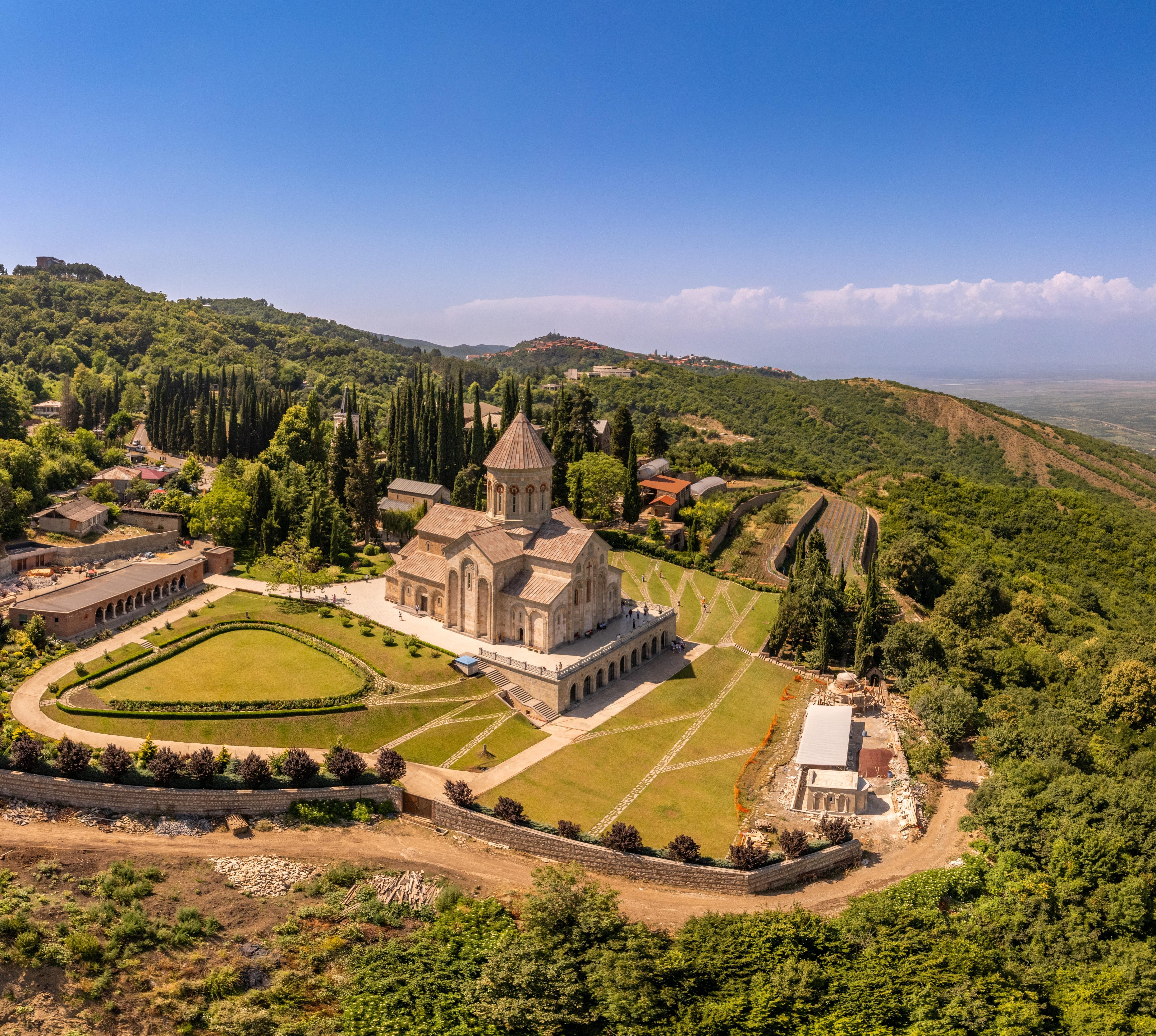 Achte auf die Schilder „Bodbe Monastery“, dann begegnest du gleich vor den Toren der Stadt, ein wenig niedriger gelegen, einem prächtigen Frauenkloster. Es stammt aus dem 9.Jh., weist nach mehreren Umbauten aber viele Elemente aus dem 17.Jh. vor. Es trägt den Namen der hl. Nino, die das Christentum nach Georgien brachte und hier begraben sein soll. So wurde Bodbe zum Wallfahrtsziel. Neben dem herausragenden Gebäude macht auch die Grünanlage mit ihren Ausblicken gewaltigen Eindruck.