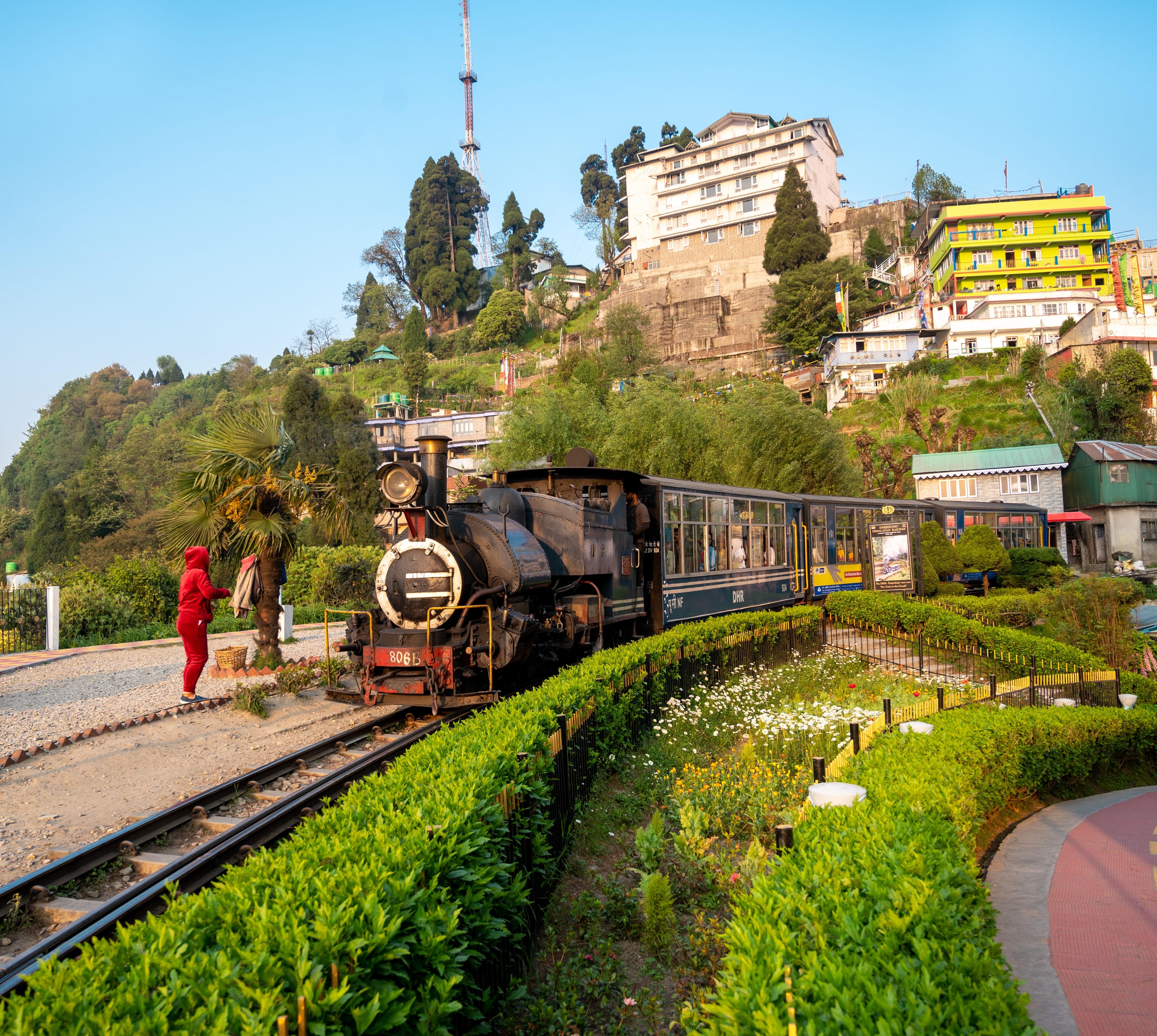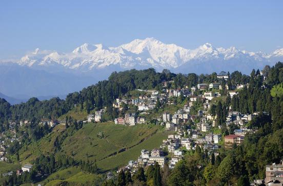 Ein hoch gelegener Kultort für alle Teekenner! Überall sind Terrassen mit Teepflanzungen zu sehen. Sie entstanden nach 1835, als die Briten das für Hochlandtees klimatisch günstige Gelände vom Maharadscha des benachbarten Sikkim „geliehen” bekamen, um ihre Schösslinge der Teepflanze aus China zu pflanzen. Für den Transport der Ernten legten sie eine Straße und später eine gewagte Bahnlinie an. Heute fährt hier der toy train, eine Schmalspurbahn, die tolle Aussichten preisgibt und teilweise so nah an den Häusern vorbeifährt, dass man den Bewohnern auf den Teller schauen kann. Für die Europäer der Kolonialzeit war Darjeeling vor allem eine hill station, in der sie der brütenden Hitze der Ebenen entkommen konnten. Der Ort Darjeeling (der Name Dorje Ling bedeutet „Land des Donnerschlags”) erstreckt sich über eine steile Hangseite. Rund 120 000 Menschen leben hier in über 2100 m Höhe, darunter viele Nepalesen, Bhutanesen und Tibeter. Spektakulär: Bei guter Sicht erblickt man den Kanchenjunga (8586 m), den dritthöchsten Berg der Erde, und sogar den etwa 200 km entfernten Mount Everest. Die beste Sicht haben Sie im Oktober und November, dann muss man sich allerdings schon warm einpacken hier oben.