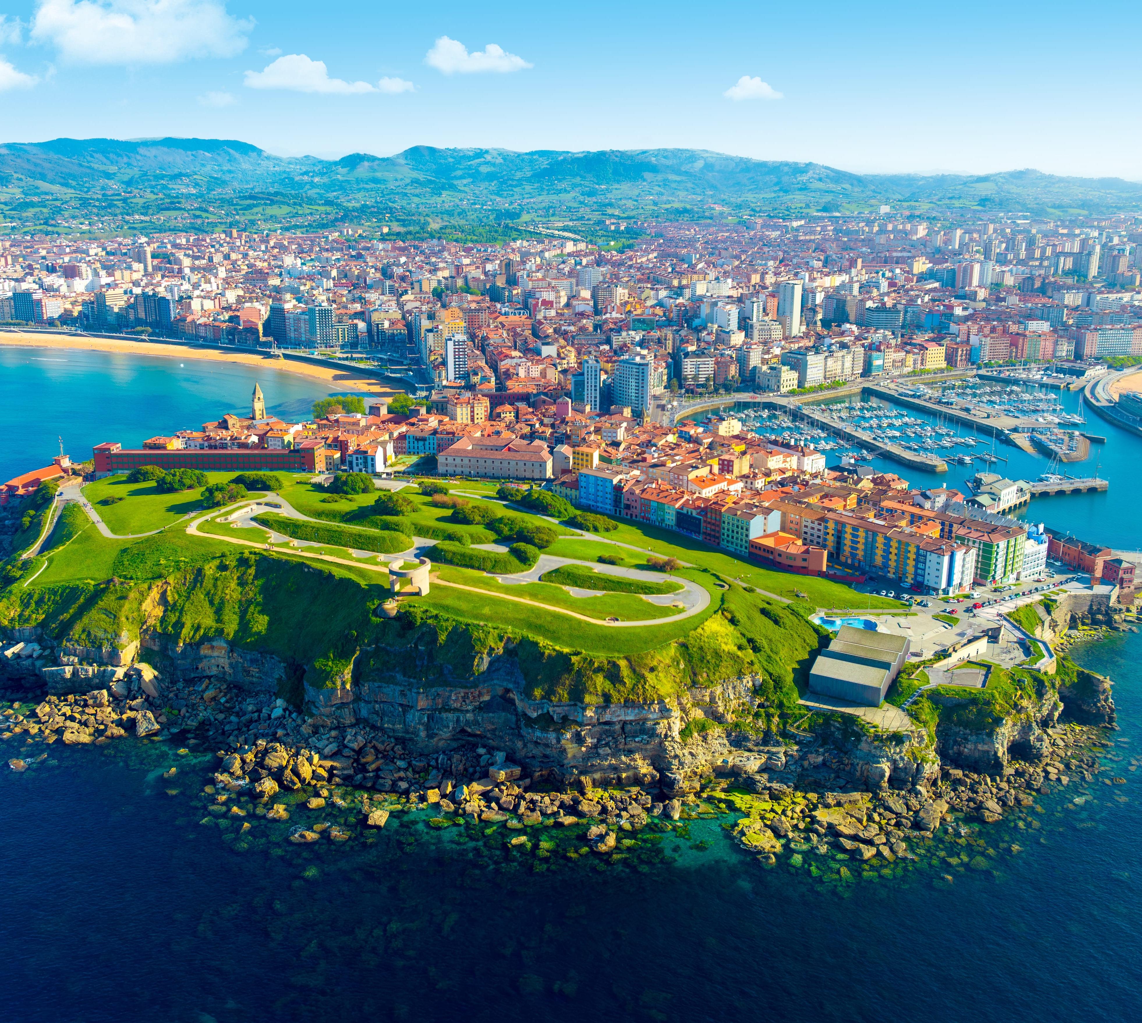 In Asturiens größte Stadt (285 000 Ew., auf Asturisch Xixón) 30 km nordöstlich von Oviedo verliebt man sich kaum auf den ersten Blick. Sie besitzt überwiegend Industrie- und Hafencharakter, bietet jedoch auch nette Seiten: den Sporthafen, die Playa de San Lorenzo sowie das historische Fischerviertel Cimadevilla mit seiner Plaza Mayor und der Plaza Jovellanos. Hier schwärmt man mit Herzenslust in die Kneipen aus.