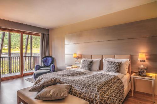 Jedes Zimmer verfügt über einen Balkon mit Bergblick. Die Unterkünfte sind mit einem Flachbild-TV, einer Minibar und einem eigenen Bad mit Haartrockner und Pflegeprodukten ausgestattet.