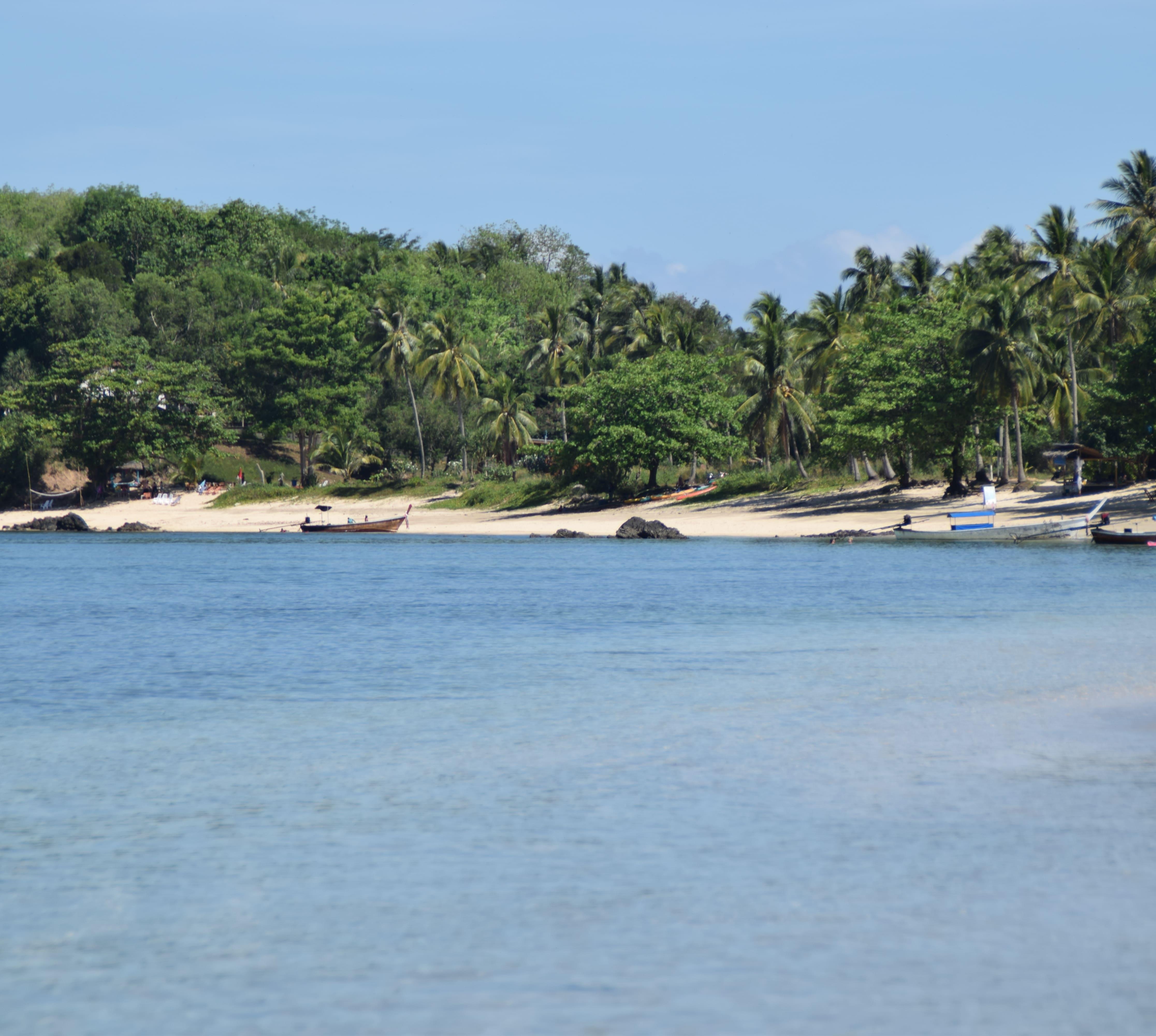 Diese Insel ist ein Felsenberg im Meer. Am Hang wuchert ein kleiner Dschungel, um den Fuß der Erhebung schmiegt sich ein sichelförmiger Strand. Hier kann man direkt vom Strand aus über Korallen schnorcheln. Und wenn man mit dem Kajak hierher fährt besteht tatsächlich die Chance, einmal im Leben eine Insel ganz für sich allein haben.