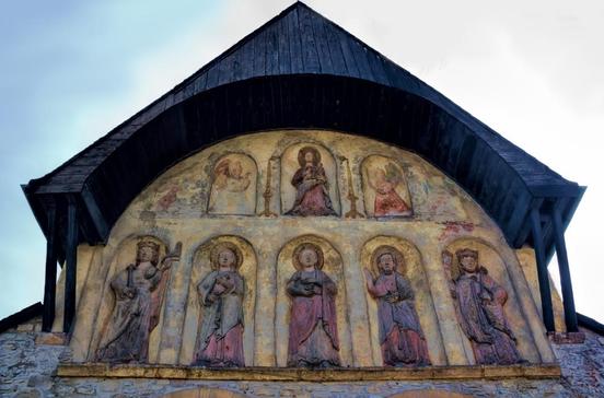 Die Kirche von 1150 (im 15.Jh. erweitert) ist eine romanische Pfeilerbasilika. Die Glasmalereien von 1250 im Chor gehören zu den ältesten in Deutschland.